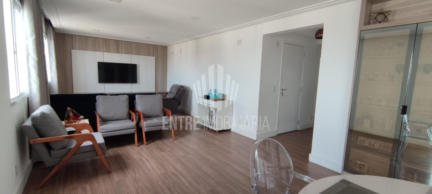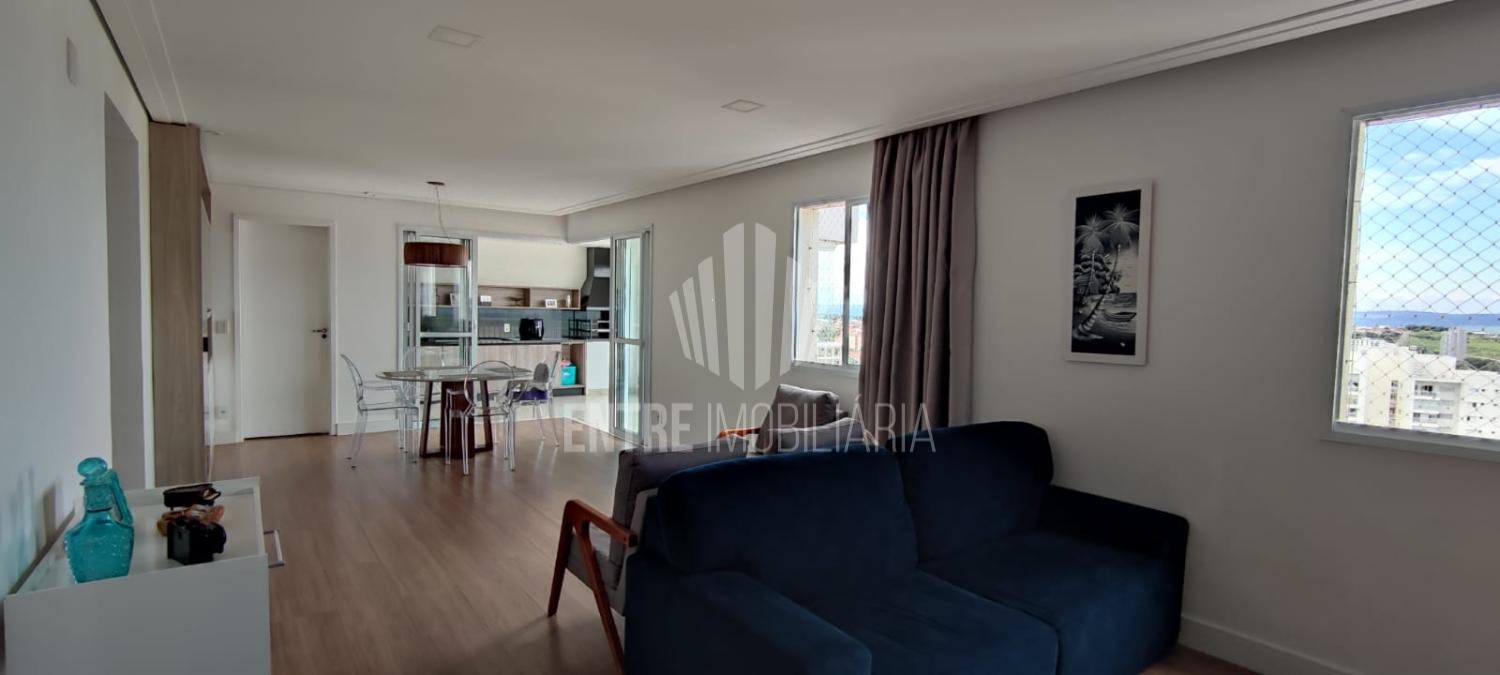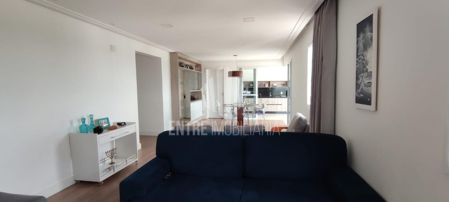 A sala para dois ambientes é integrada a varanda gourmet que por sua vez está integrada a cozinha.