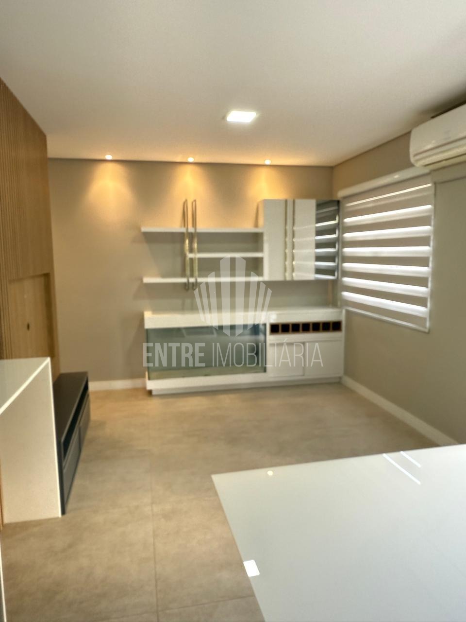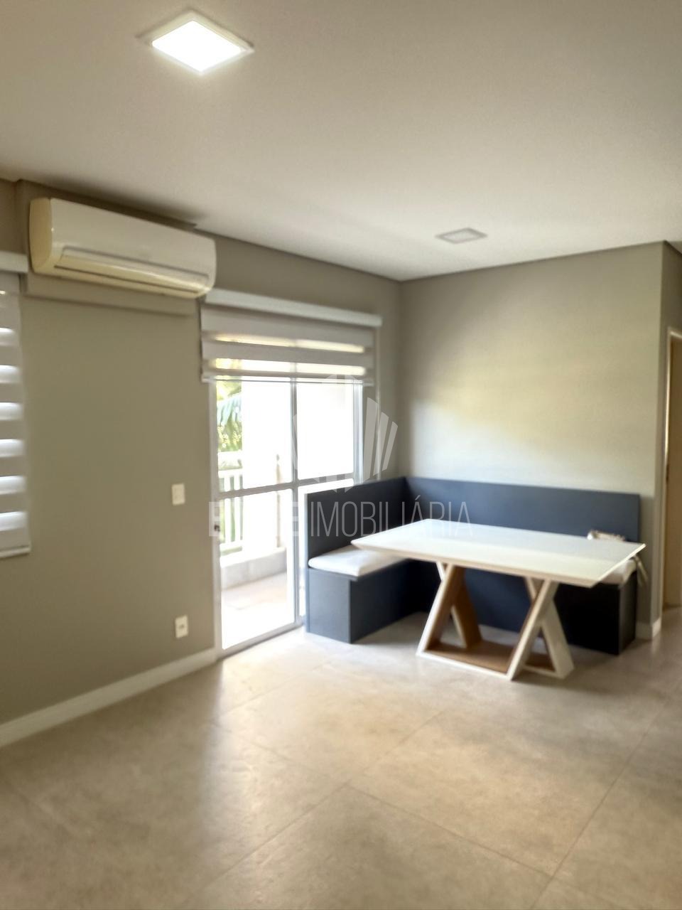 Sala para 2 ambientes, com cantinho alemão (mesa inclusa), rack, painel de TV, estante e ar-condicionado