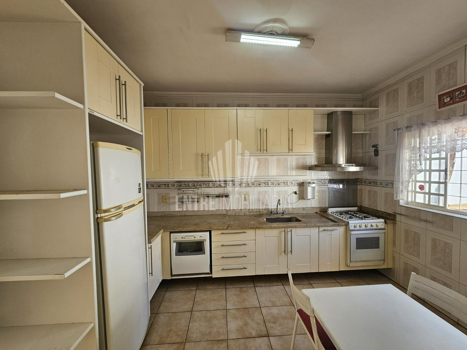 No térreo, ampla sala, sala de jantar e de tv, cozinha planejada com fogão e maquina de lavar louça embutidos, área de serviço.