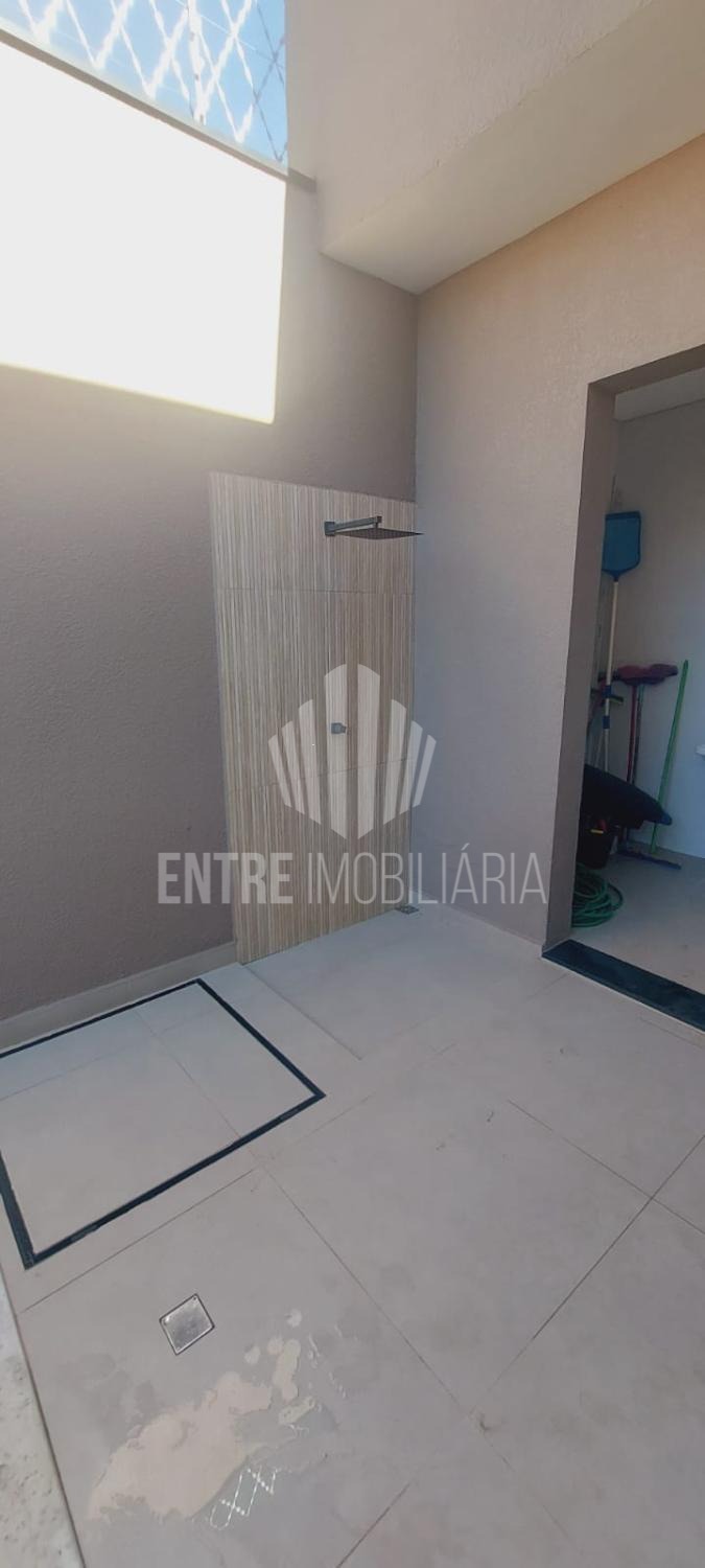 Casa térrea com 3 dormitórios, sendo uma suíte com ar condicionado e banheiros com box e metais de qualidade..