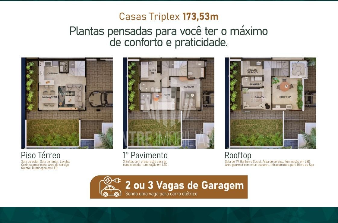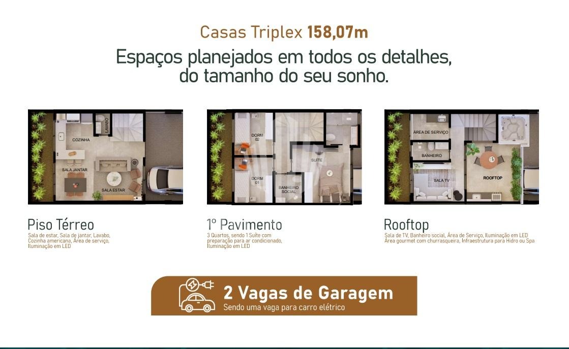 Casas Triplex com 3 quartos, mais Rooftop em condomínio com piscina, academia e toda a comodidade que você sempre sonhou.