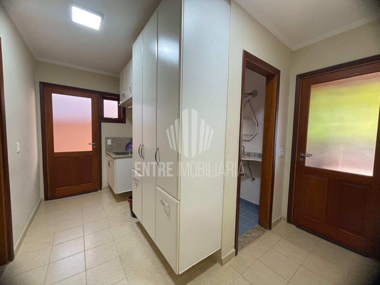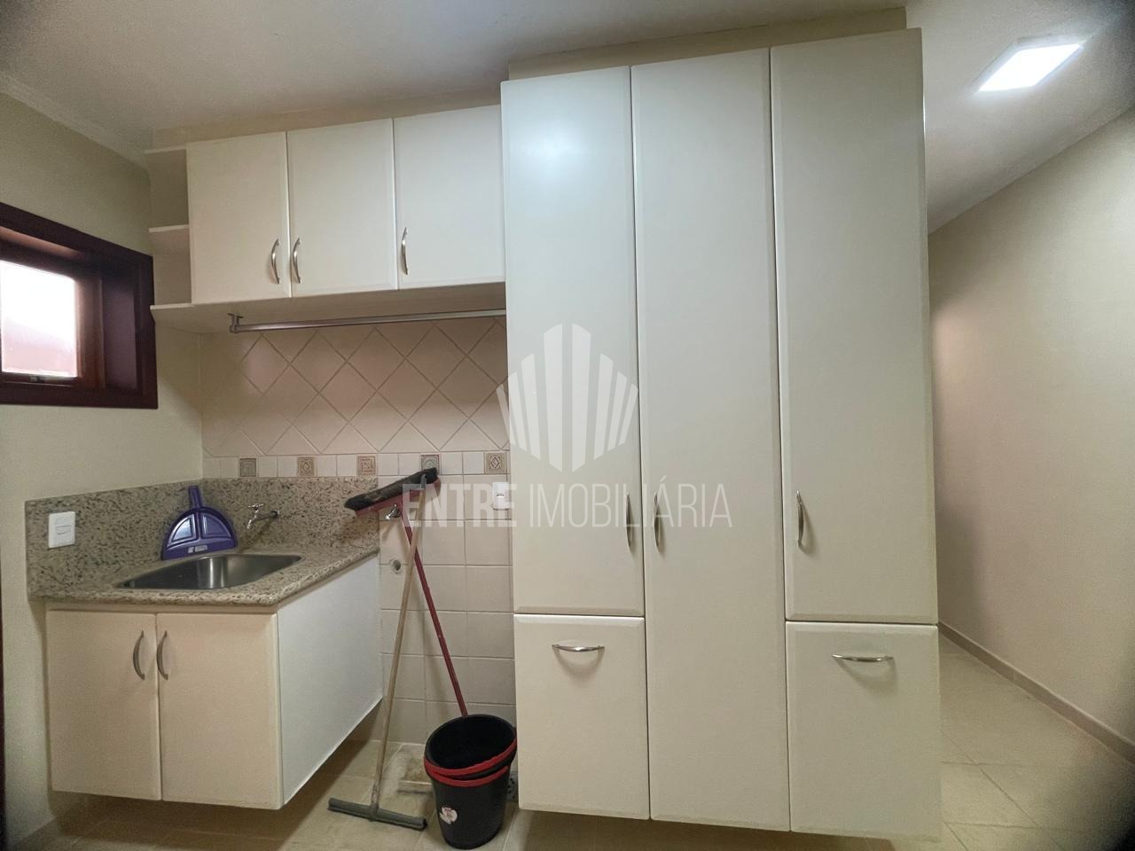 Área de serviço com lavanderia, quarto e banheiro