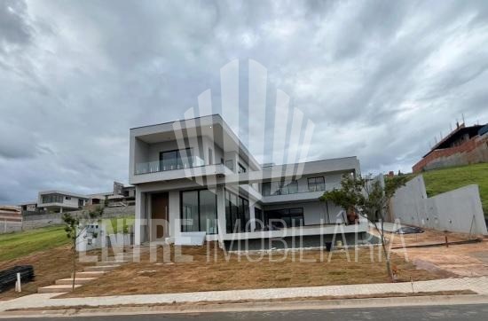Linda casa à venda em Sousas, Campinas/SP. Projeto moderno, com ambientes integrados, salas de estar, jantar, cozinha americana e espaço gourmet. Possui 4 suítes com closet, master com ducha e cuba dupla, sala íntima. Com ar-condicionado completo, iluminação, persianas automatizadas. Infraestrutura para elevador. Lazer privativo com piscina com espelho d'agua. Vestiários, 4 vagas de garagem cobertas + depósito. Tudo isso em um condomínio fantástico, com lazer completo, muita área verde e uma vista incrível.