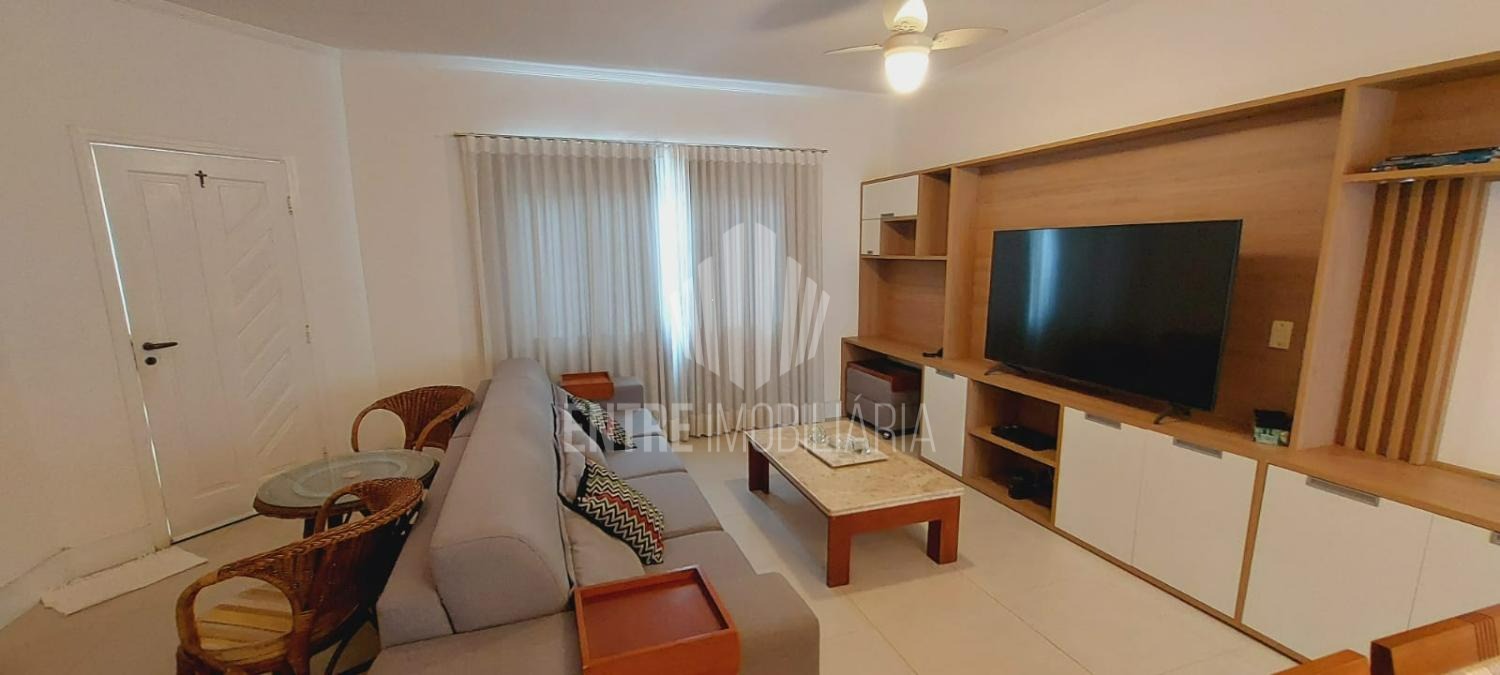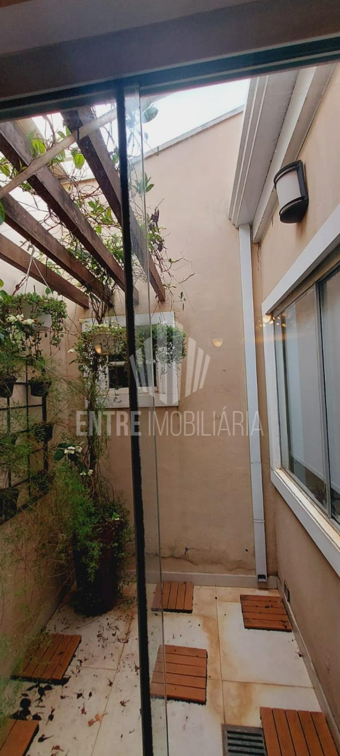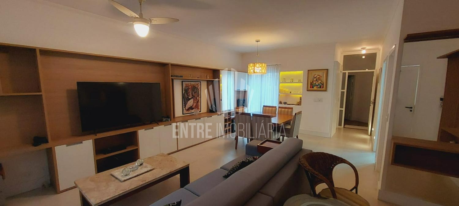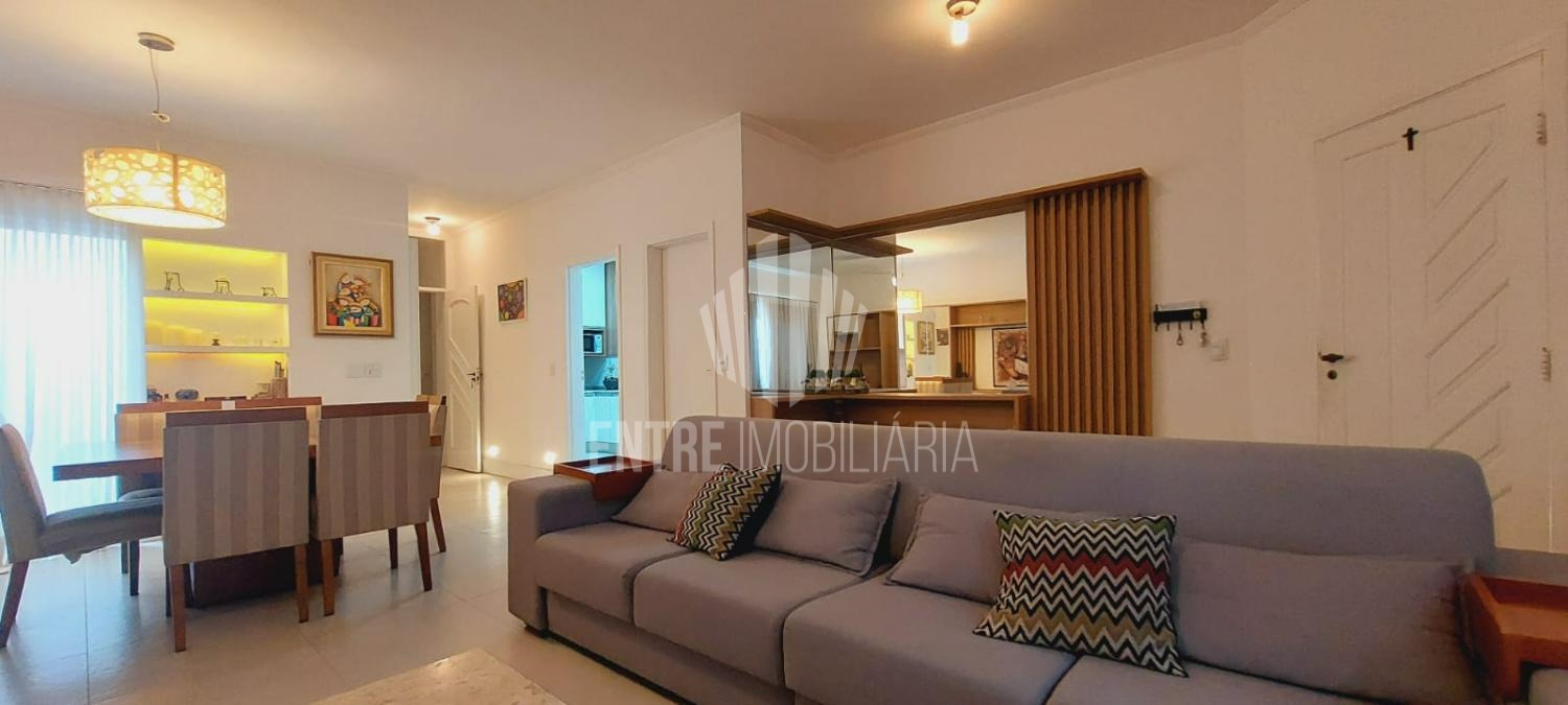 A sala ampla e integrada acomoda dois ambientes — estar e jantar — e conta com um charmoso jardim de inverno, que traz luminosidade natural ao ambiente.