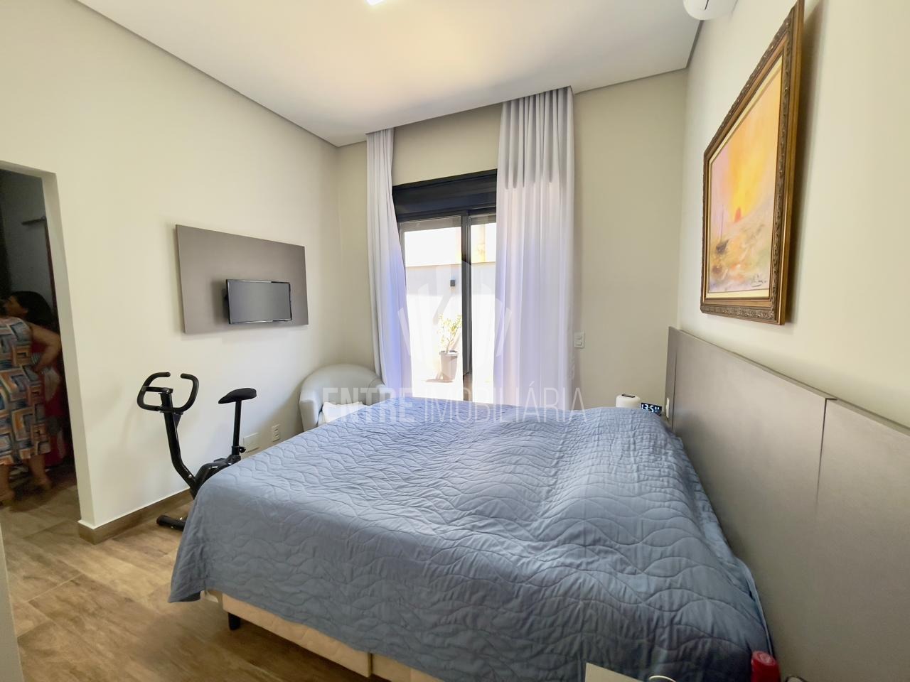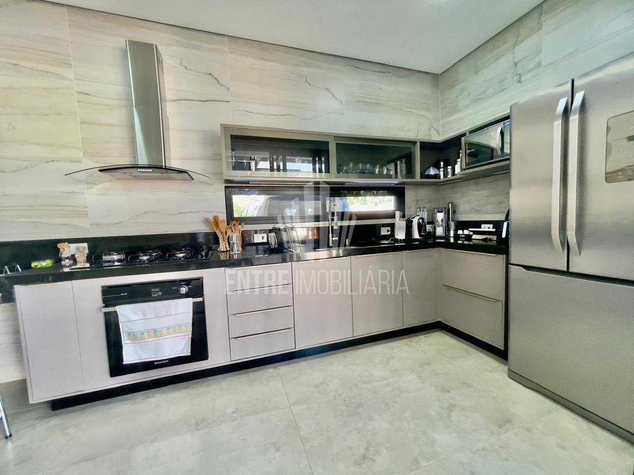 A grandiosa área gourmet, equipada com churrasqueira, integra-se harmoniosamente à cozinha americana, convidando a momentos memoráveis em família ou entre amigos. 4 vagas de garagem conferem praticidade, em harmonia com o portão eletrônico e a infraestrutura de ar-condicionado e móveis planejados.