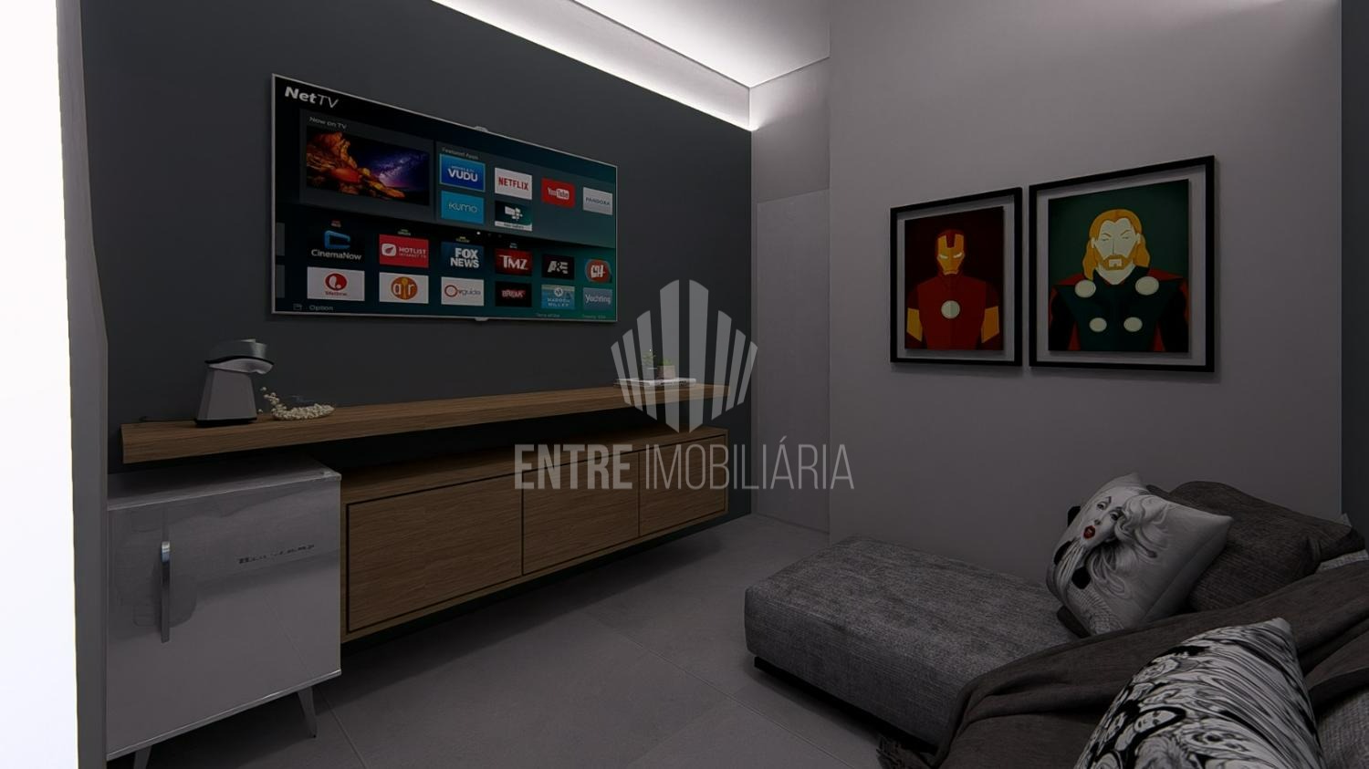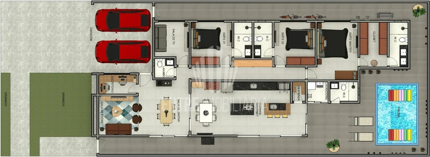 Móveis planejados (banheiros, quartos, cozinha e lavanderia).