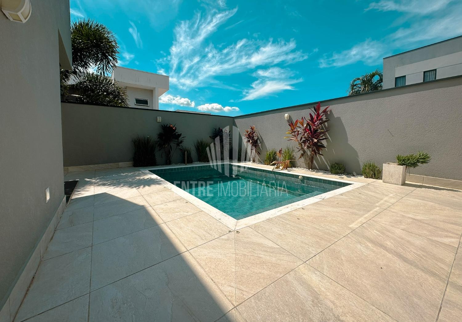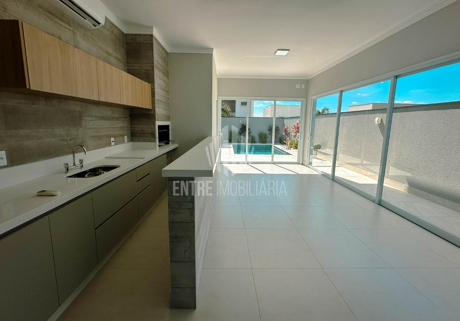 Maravilhosa casa térrea, acabamento de primeira, com 3 suítes todas com armários e ar condicionado, escritório, sala bem ampla para 2 ambientes com pé direito alto e ar condicionado; cozinha gourmet com churrasqueira e planejada com armários, banheiro de apoio a churrasqueira, área de serviço com armários e um excelente quintal com piscina. piso todo em porcelanato, aquecimento solar, casa bem clean, com excelente padrão de construção e acabamento.