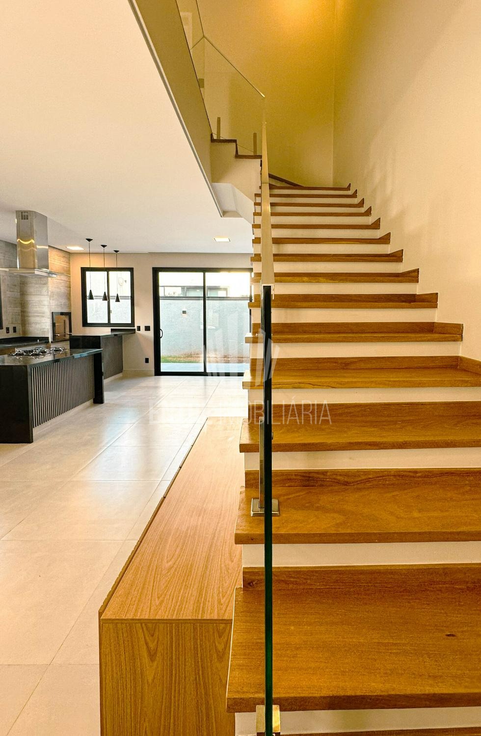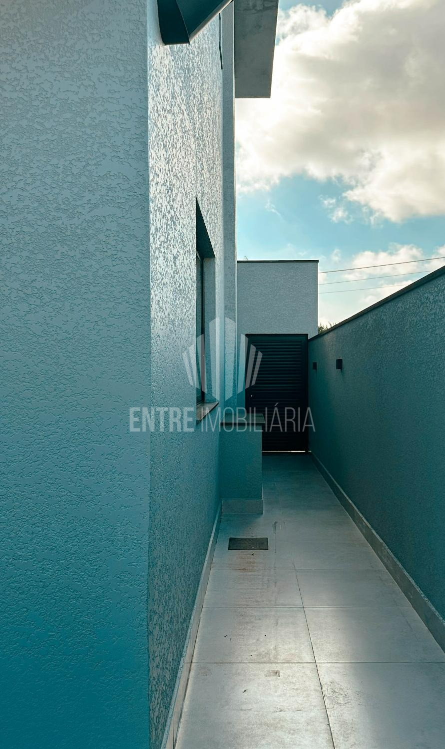 Lindo sobrado com 3 suítes sendo uma com closet, todos com armários e piso vinílico, banheiros com box e gabinete.