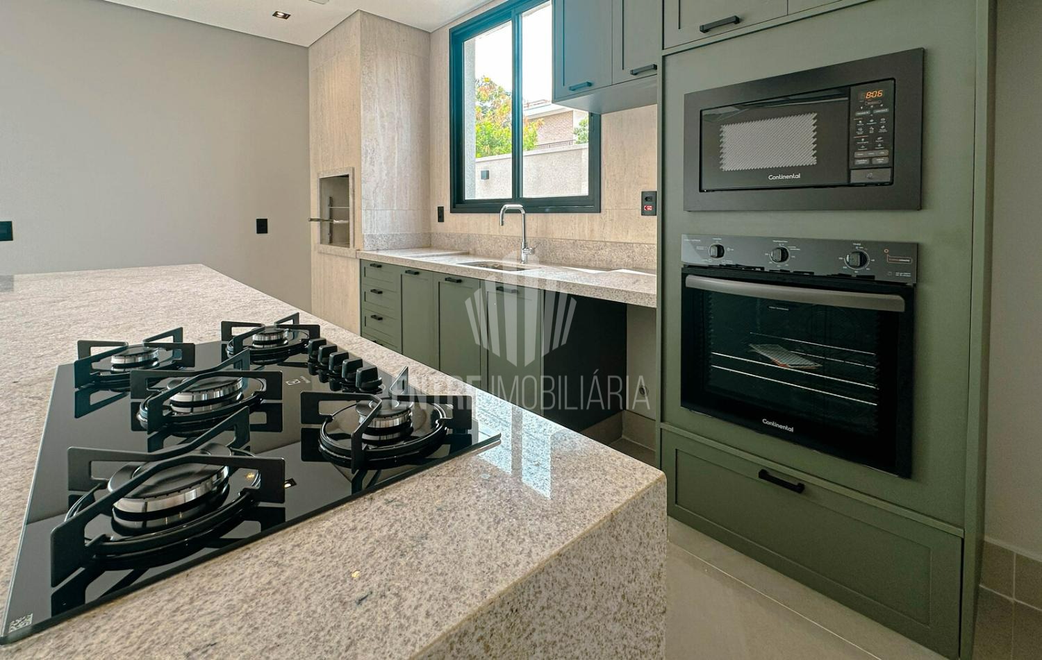 A cozinha gourmet é um grande destaque, equipada com forno, cooktop e coifa, perfeita para quem aprecia cozinhar e receber com estilo.