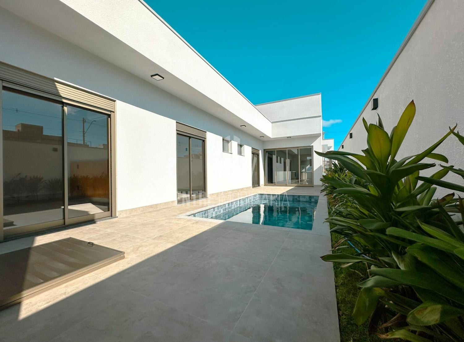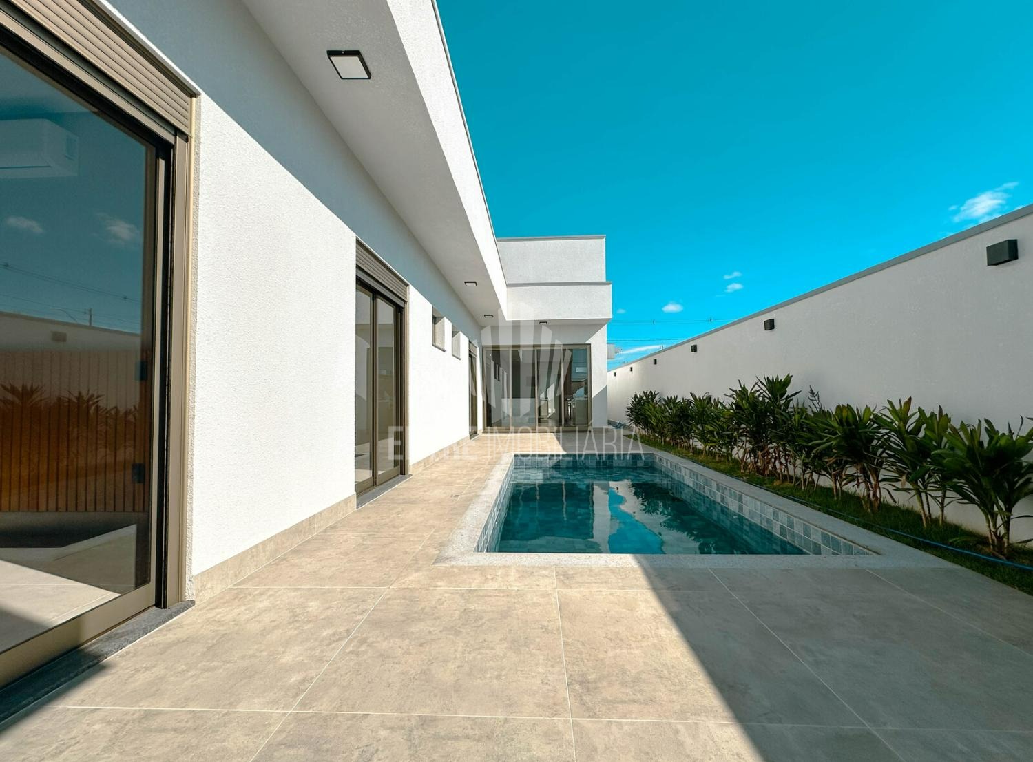 Na área externa, uma agradável piscina completa o cenário perfeito para lazer e relaxamento.