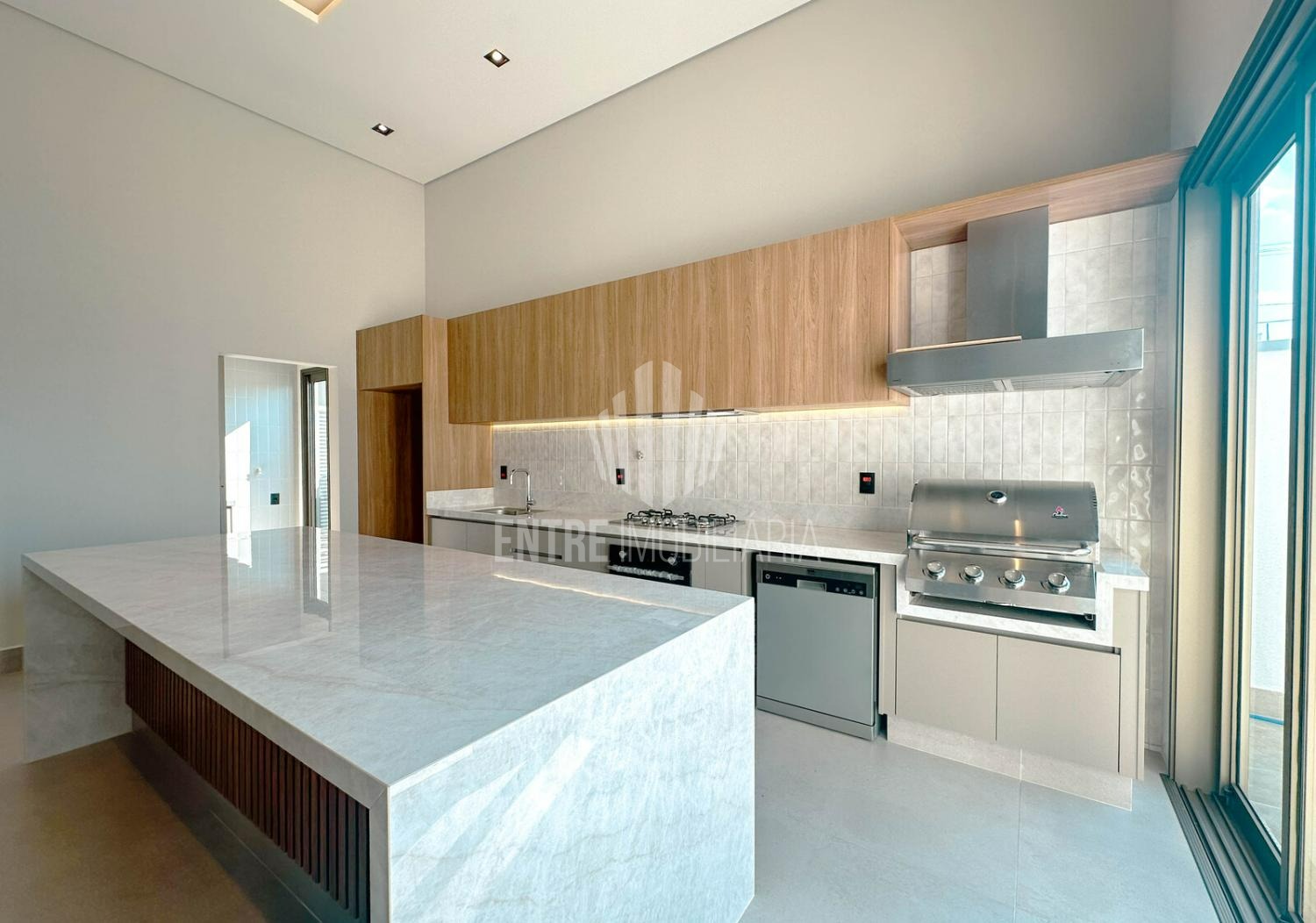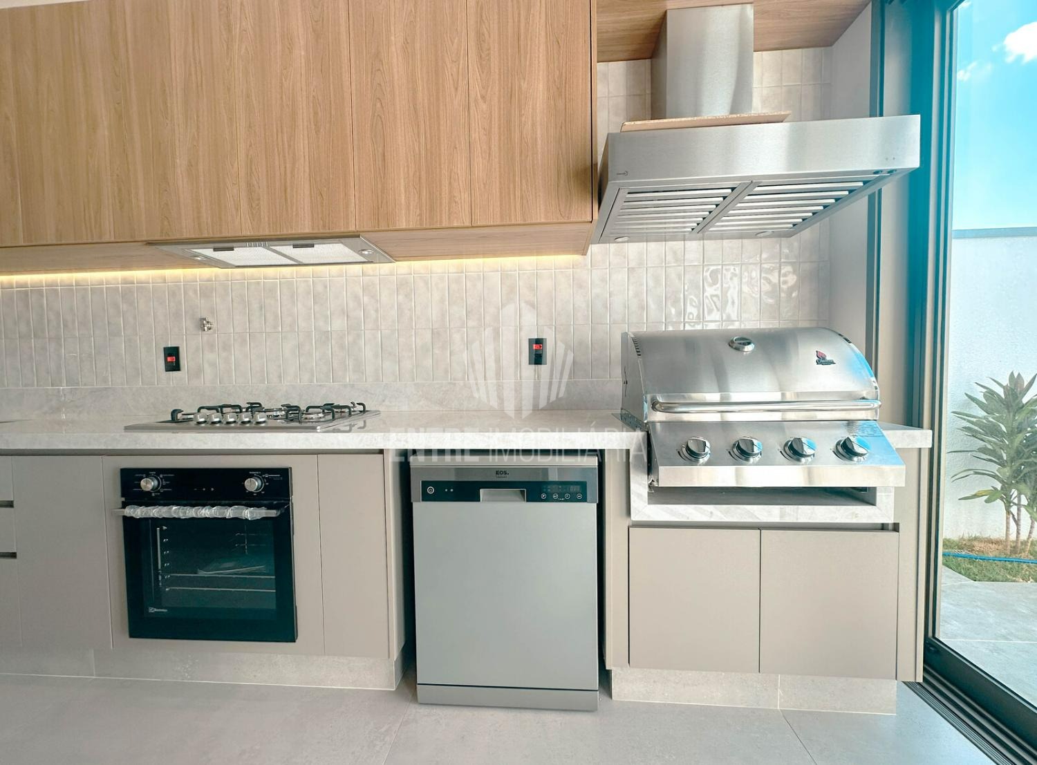 A casa conta com um escritório perfeito para home office, além de uma cozinha completa equipada com lava-louças, forno, cooktop e churrasqueira a gás, integrada à área gourmet — um convite para momentos únicos com família e amigos.