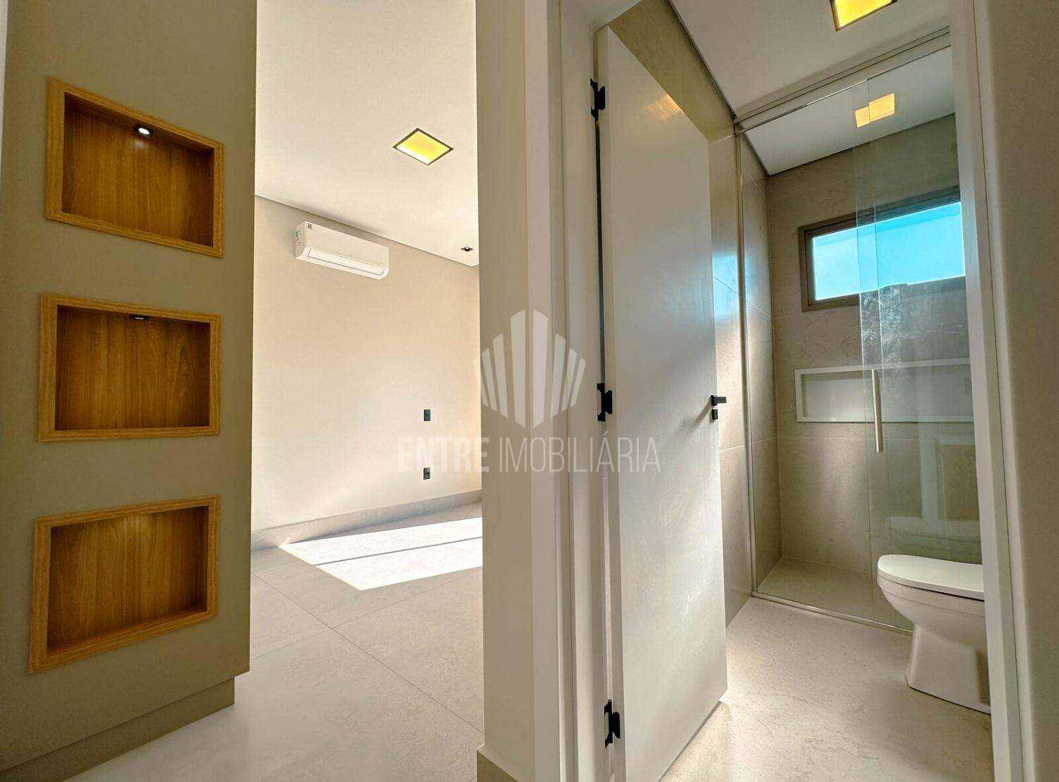 Pensando em conforto e tecnologia, a residência possui persianas automatizadas, ar-condicionado em todos os ambientes e sistema de aquecimento solar, unindo eficiência energética e bem-estar.