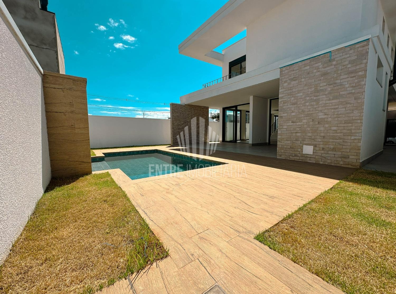 Na área externa, uma linda piscina de alvenaria revestida com pastilhas convida para momentos de lazer e relaxamento.
