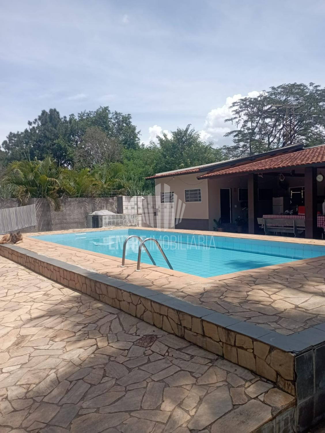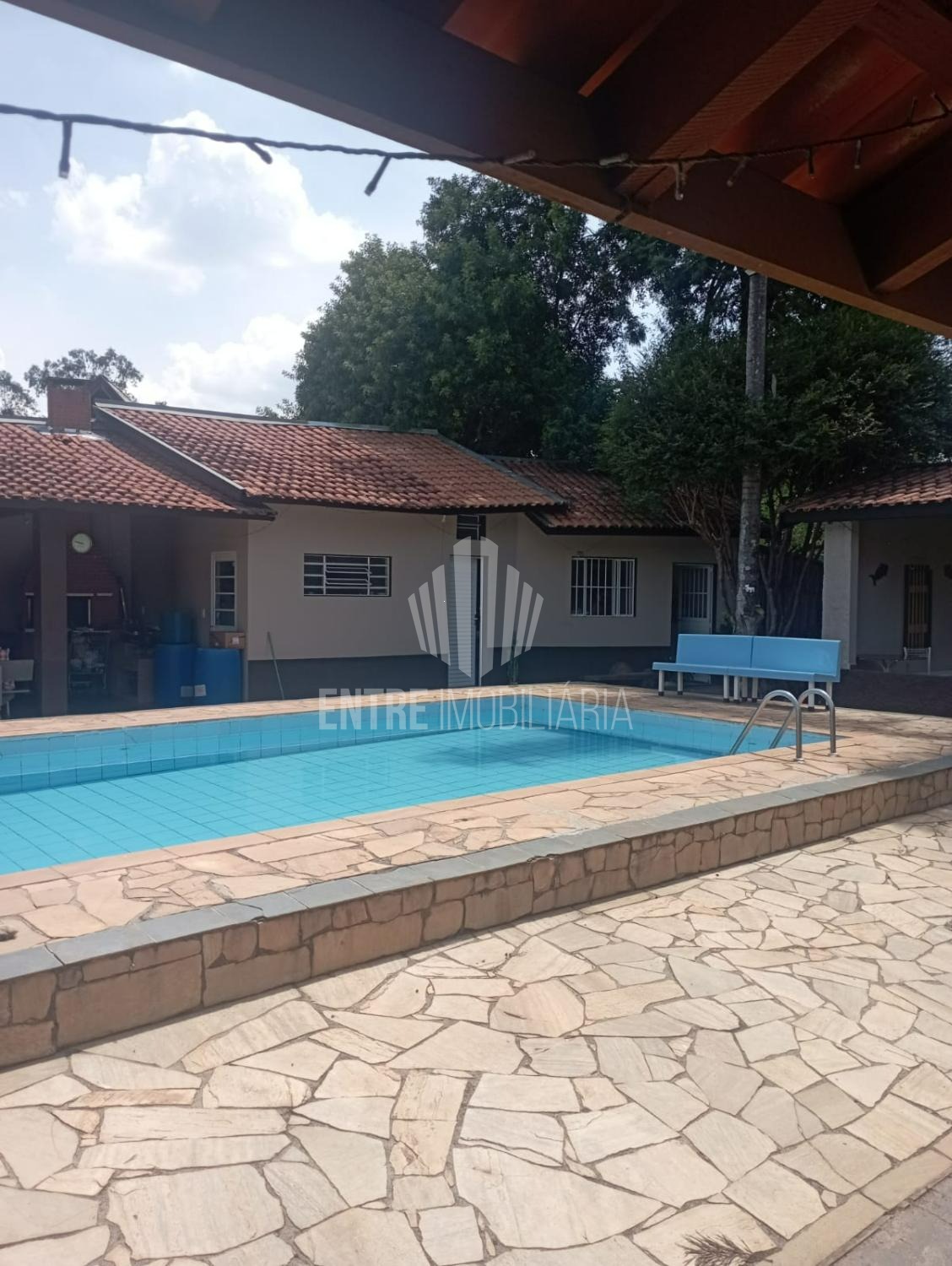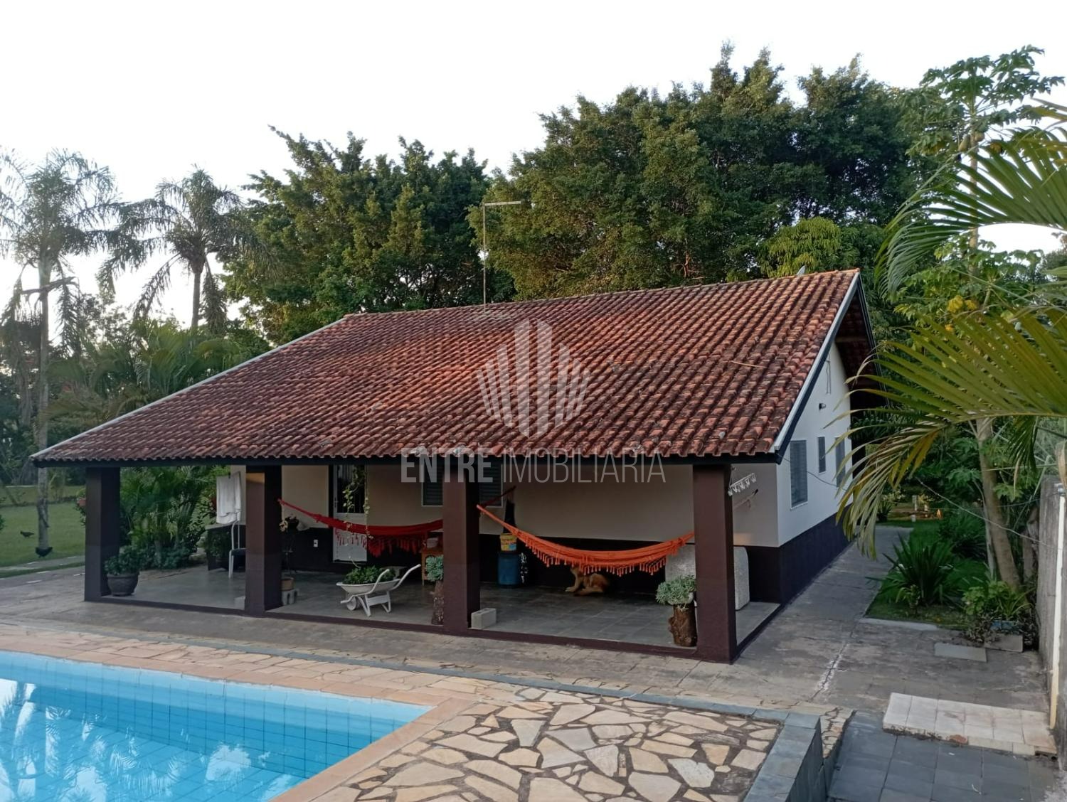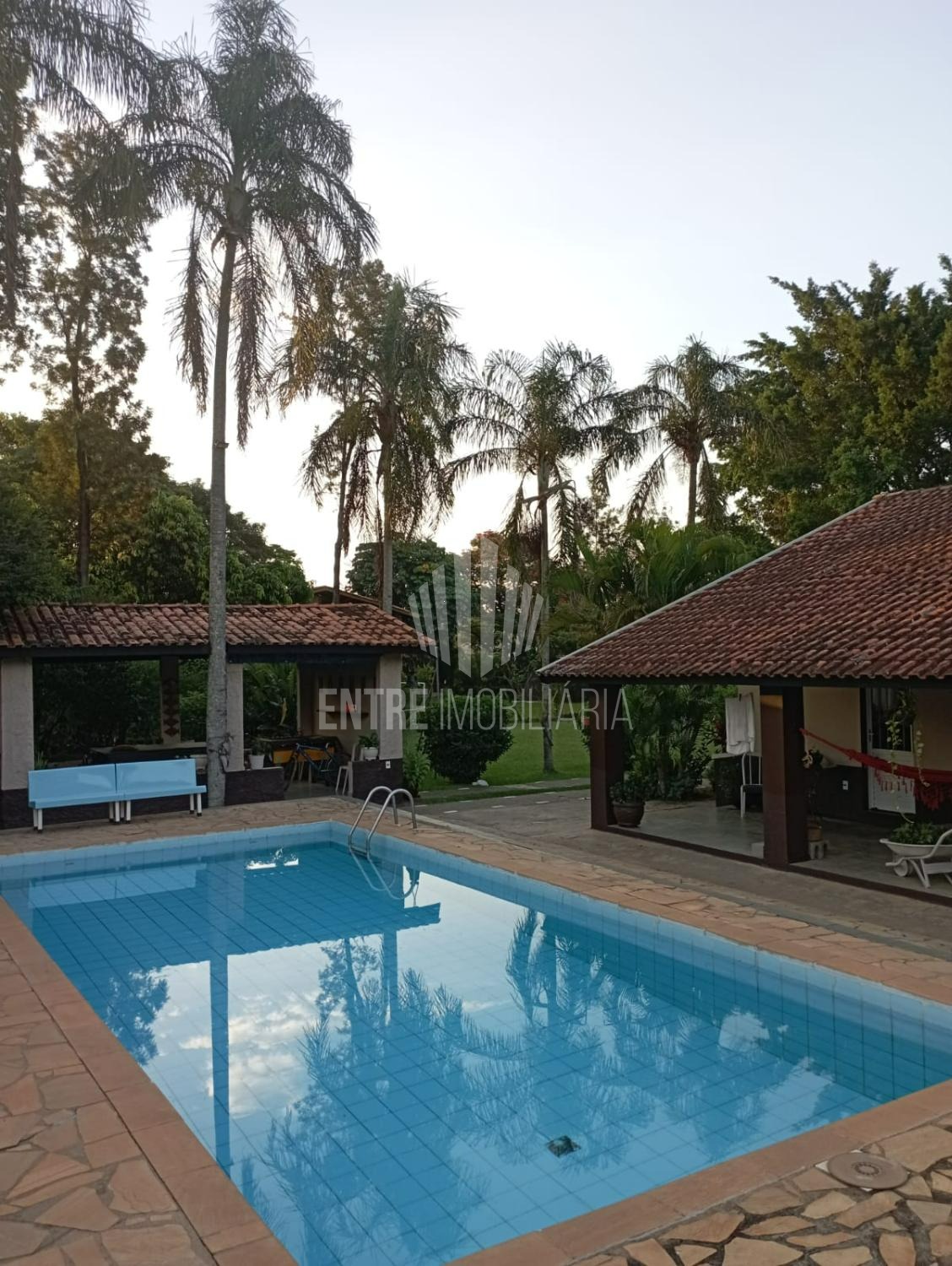 Pequeno pomar, Mini campo, salão de jogos e piscina 9x4x1,30 com banheiro de apoio.