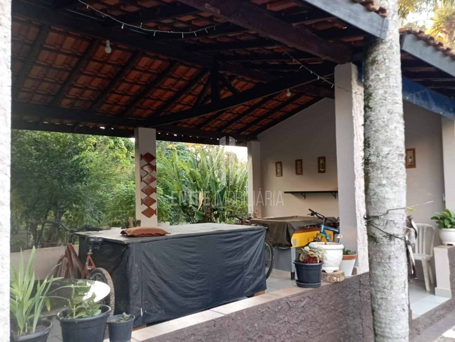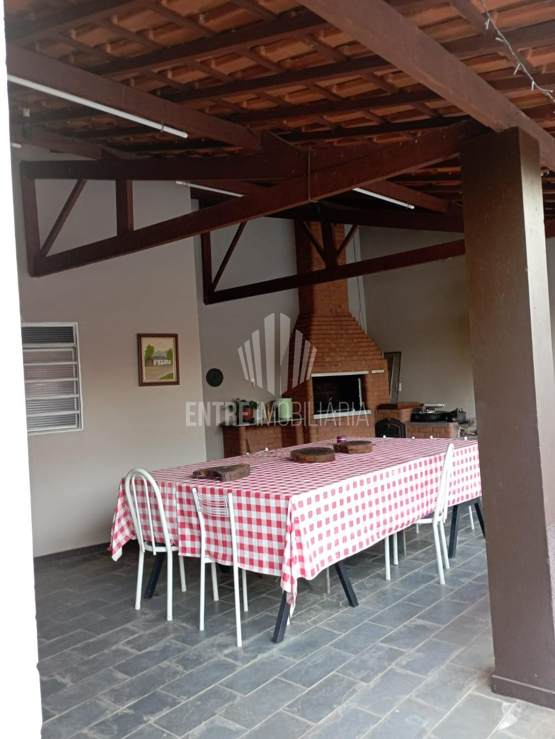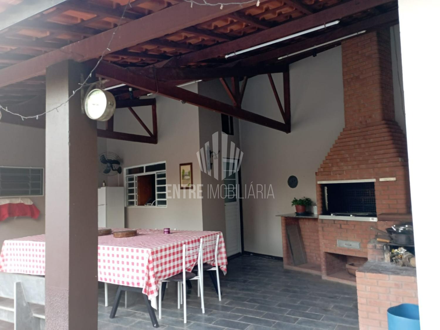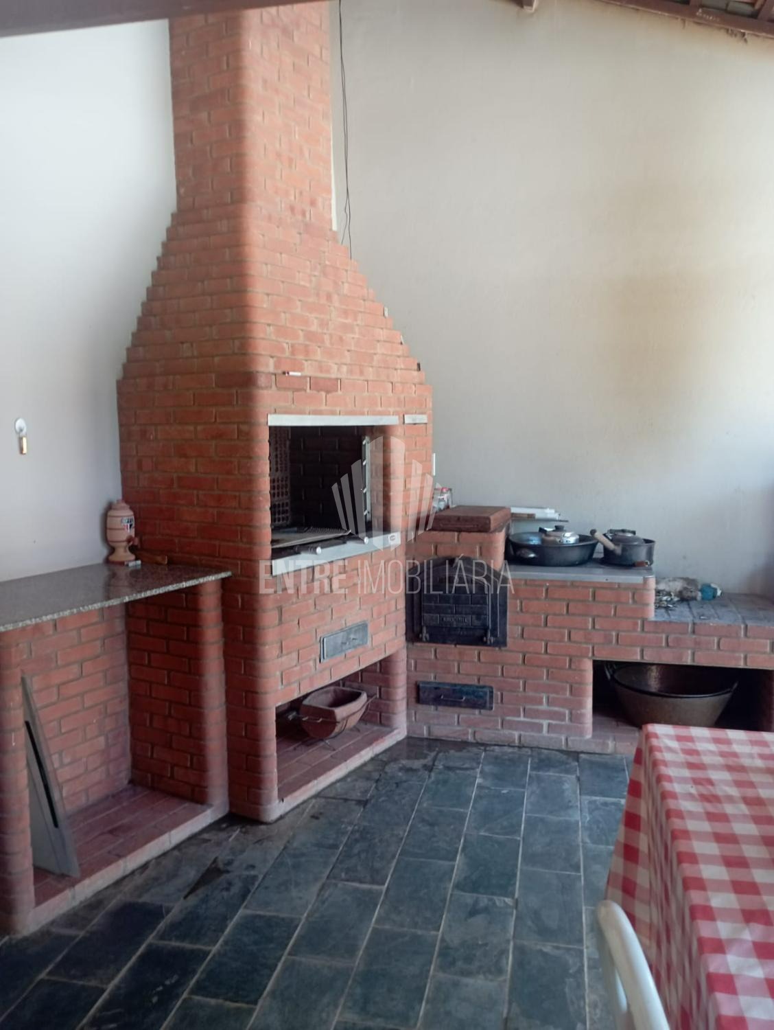 Salão de churrasqueira com cozinha de apoio, lavanderia fechada, quartinho de ferramentas, galinheiro.