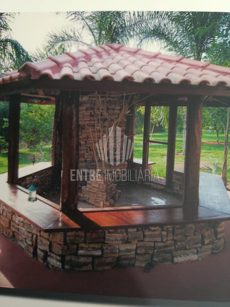 Ampla varanda com espaço gourmet com churrasqueira, fogão e forno a lenha, e redário.
