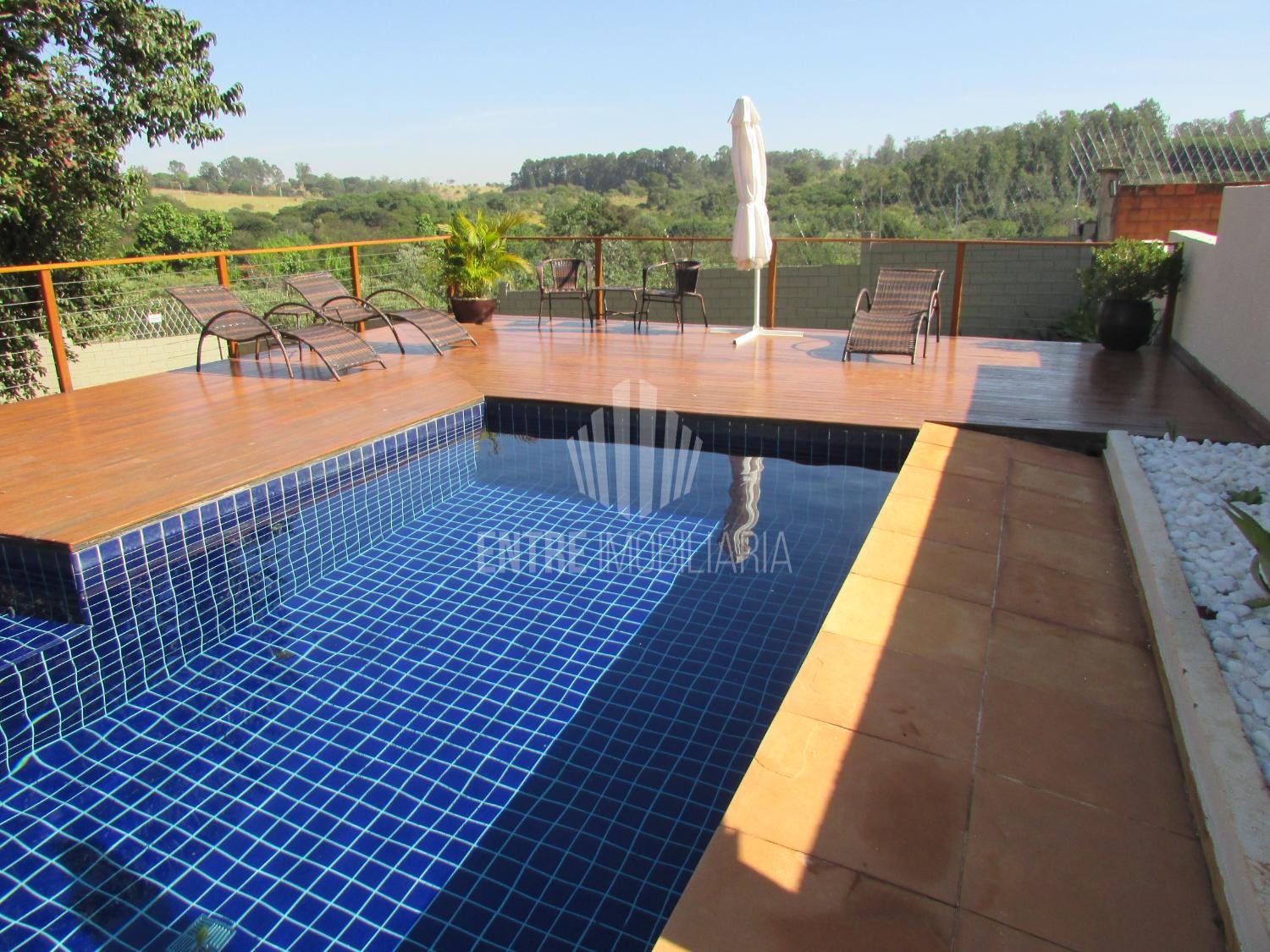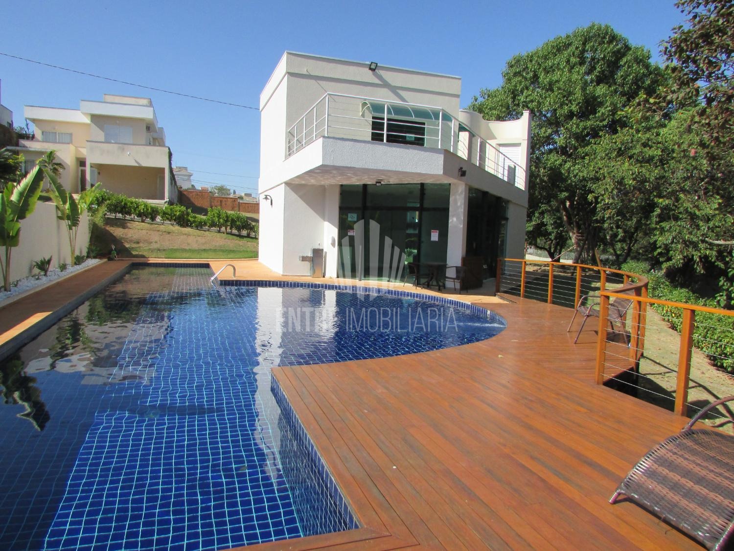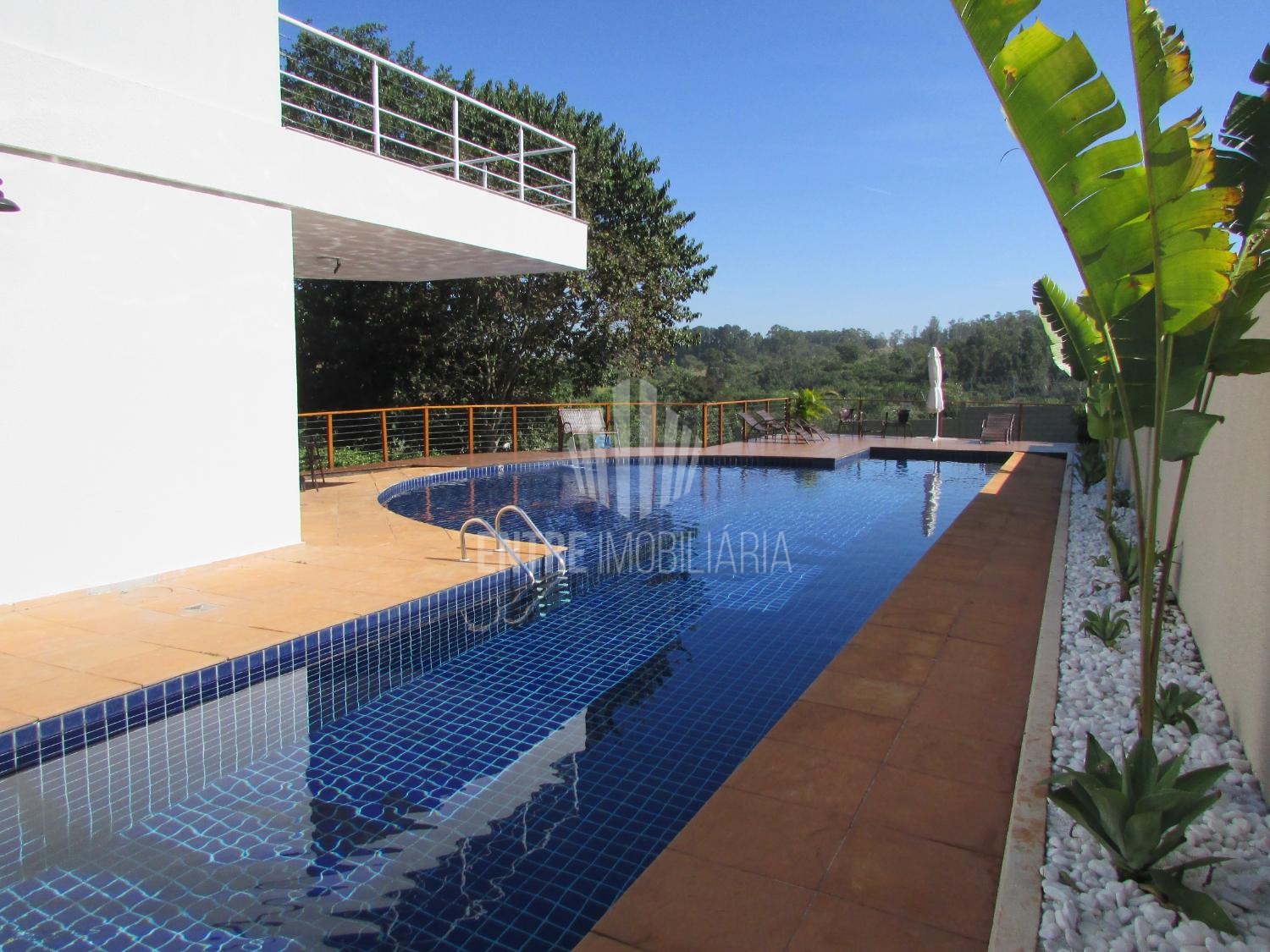 Área de lazer com salão de festas, linda piscina, playground, cerca elétrica e portaria com segurança 24 horas.